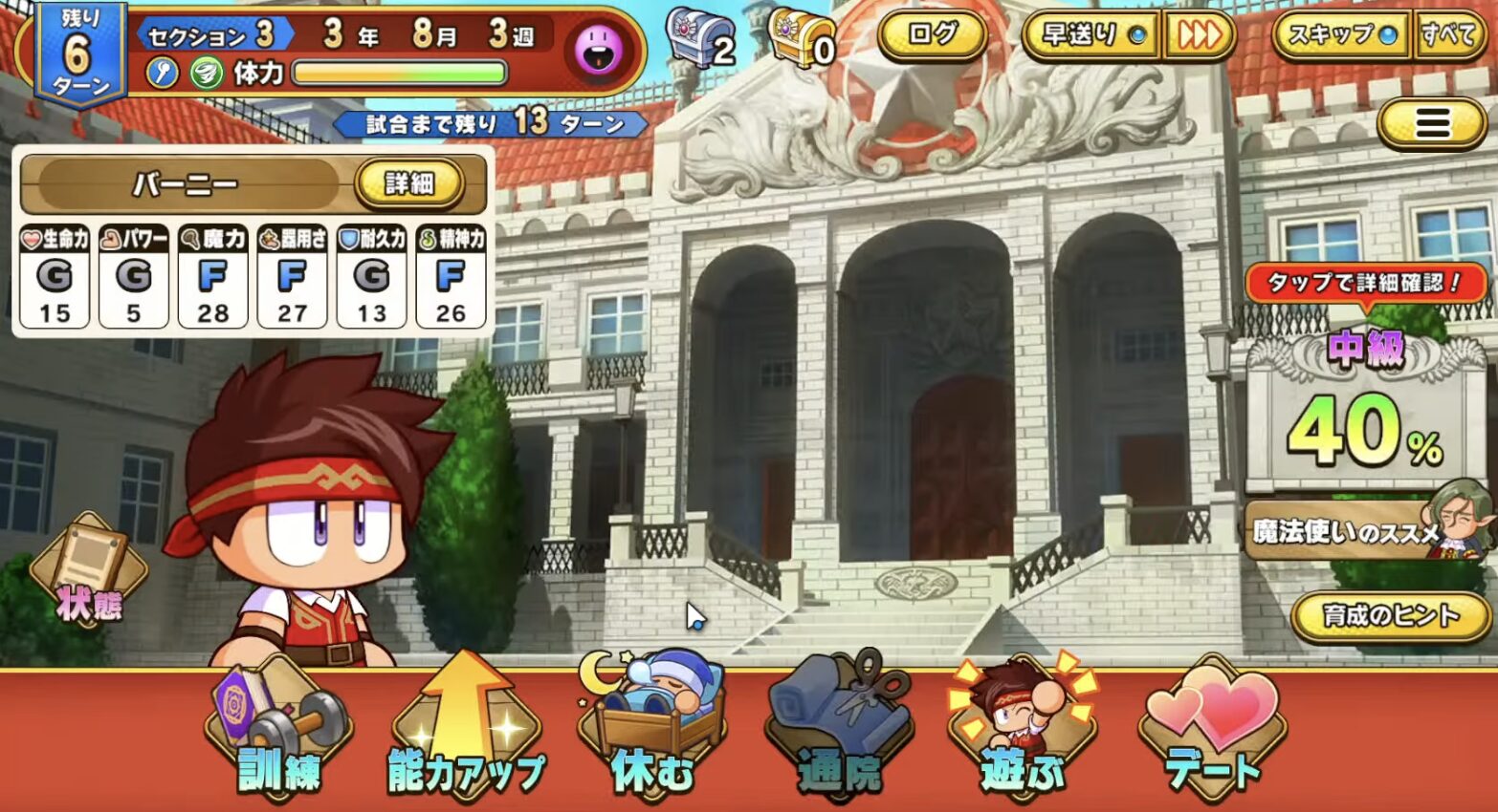 • スキップ機能充実で育成が快適