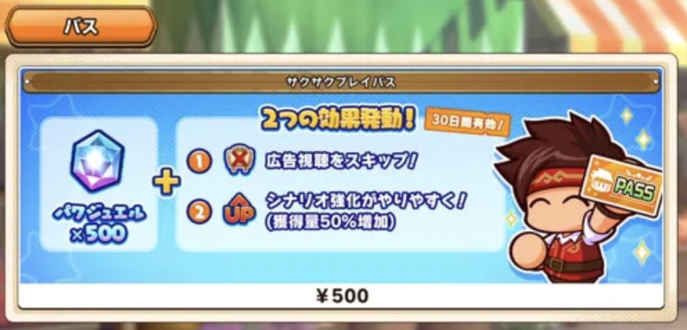 広告スキップ+育成効率アップ(獲得量50%増加)